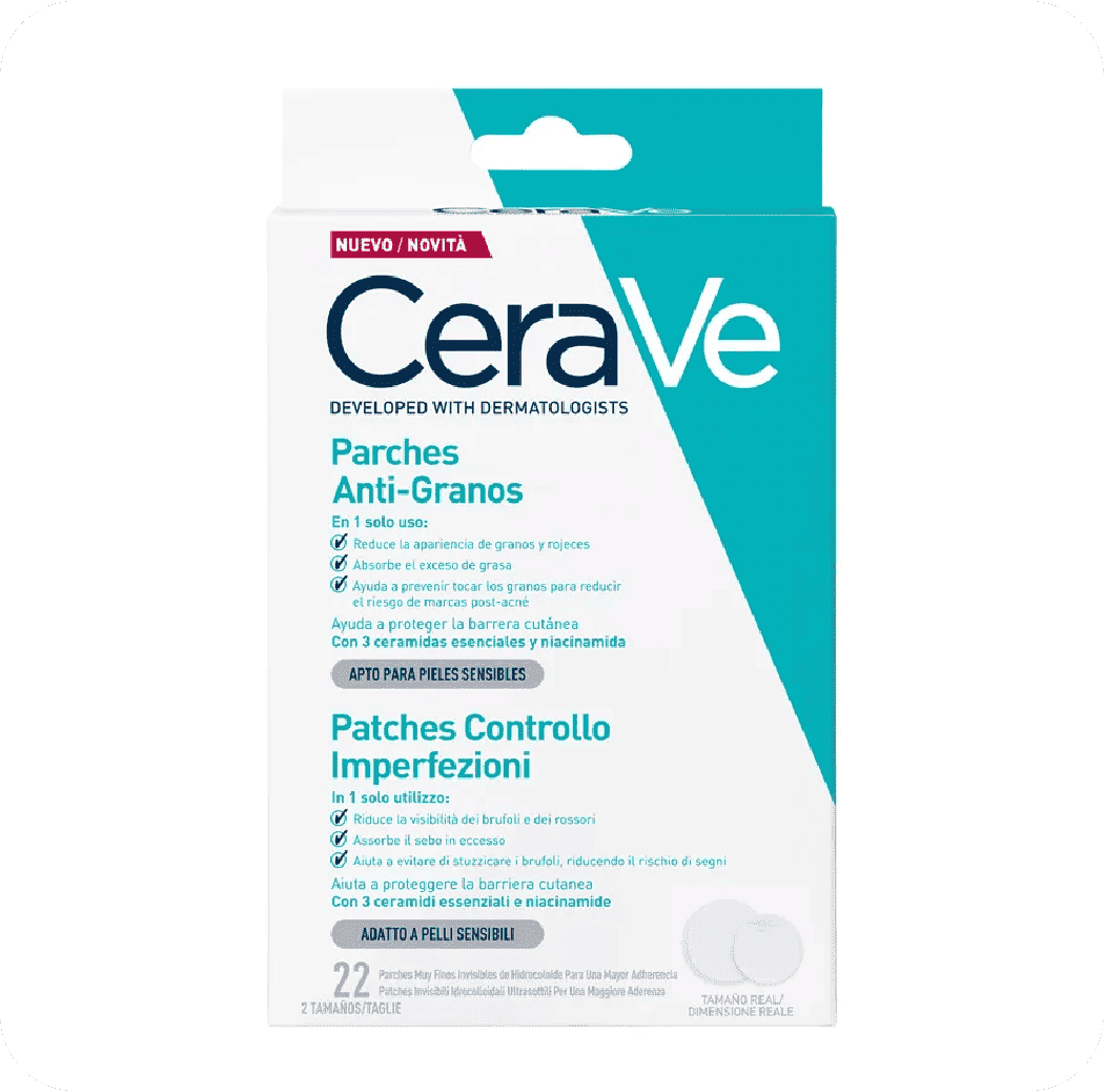 Parches que reducen visiblemente la apariencia de los granos en solo 3 horas sin dejar marcas y protegen la barrera cutánea. |