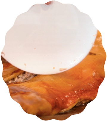 CON UN PLATO. Y como buena estrella, no podía faltar un toque teatral, la tradición de cortarlo con un plato en lugar de un cuchillo no es solo para impresionar, esta práctica demuestra lo tierno que es el animal y el punto exacto de cocción. Una vez cortado, se rompe el plato para cerrar el ritual.