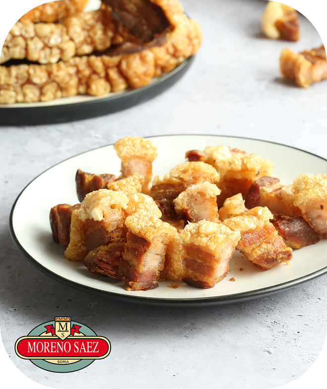 Destacamos a Moreno Saéz, especialistas en Torrezno de Soria y galardonado con el premio al mejor torrezno del mundo en varias ediciones. Una empresa familiar con más de 60 años de experiencia en la fabricación de embutido elaborado mediante procesos naturales. Podéis entrar a su página web para conocer más sobre sus productos y comprar su Torrezno de Soria. |