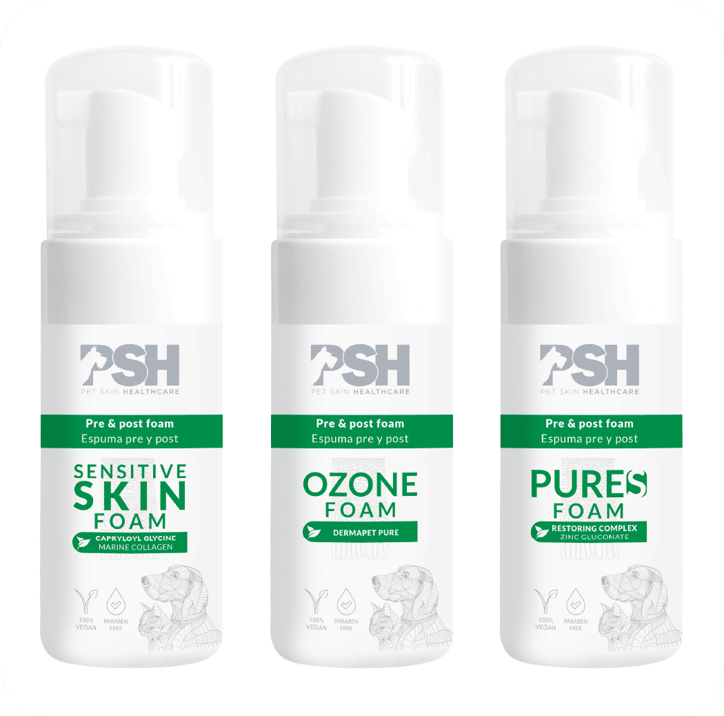Productos para perros y gatos con piel sensible, con tendencia grasa, atópicas o afectadas por dermatitis. Estos productos no requieren aclarado ni baño. |