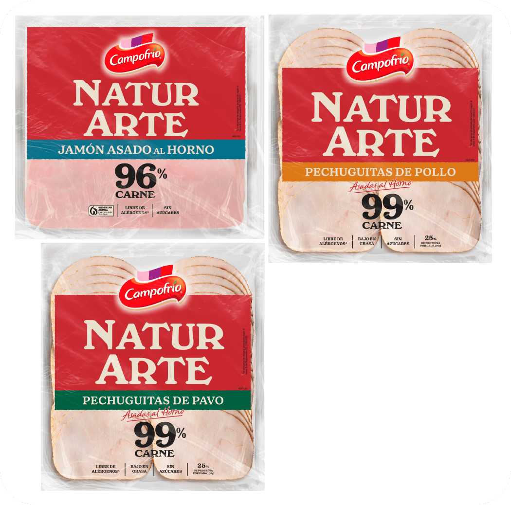 Nuevos productos de la gama NaturArte: Pechuga de Pollo, lonchas de Jamón Asado al Horno, Pechuguitas de Pavo y de Pollo Asadas al Horno. |