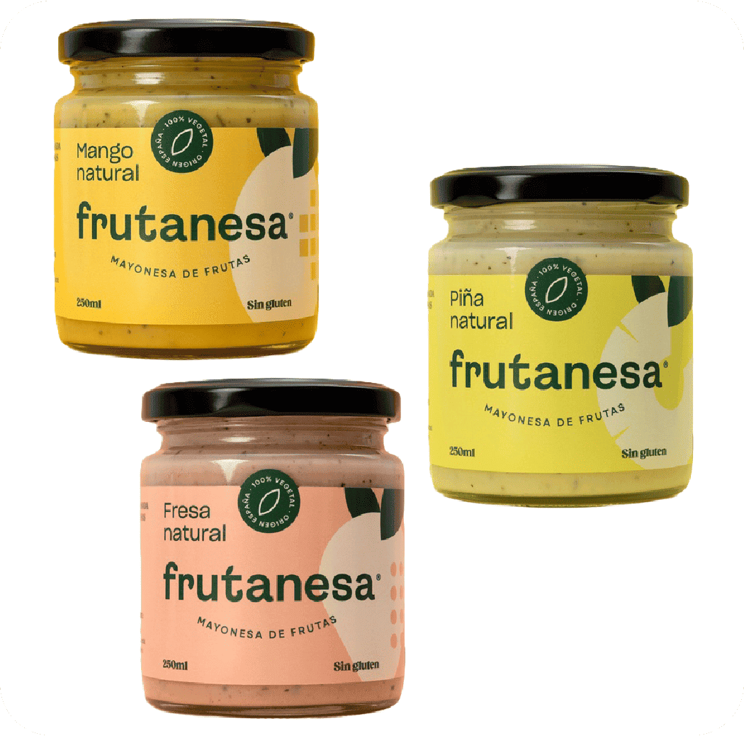 | Salsas de frutas 100% vegetales: de fresa, piña y mango. |