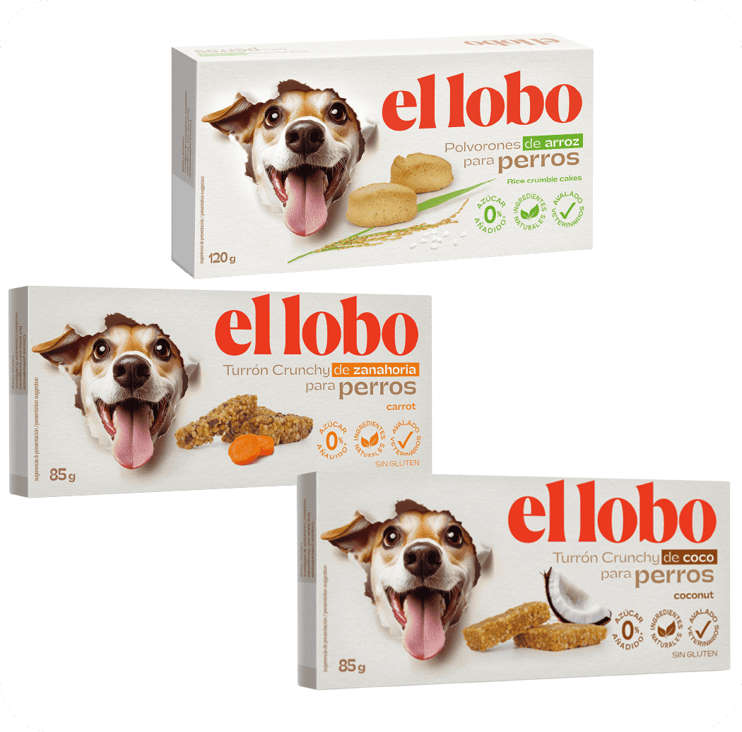 Turrones y polvorones para perros. Turrón de zanahoria, Turrón de coco y Polvorón de arroz. |