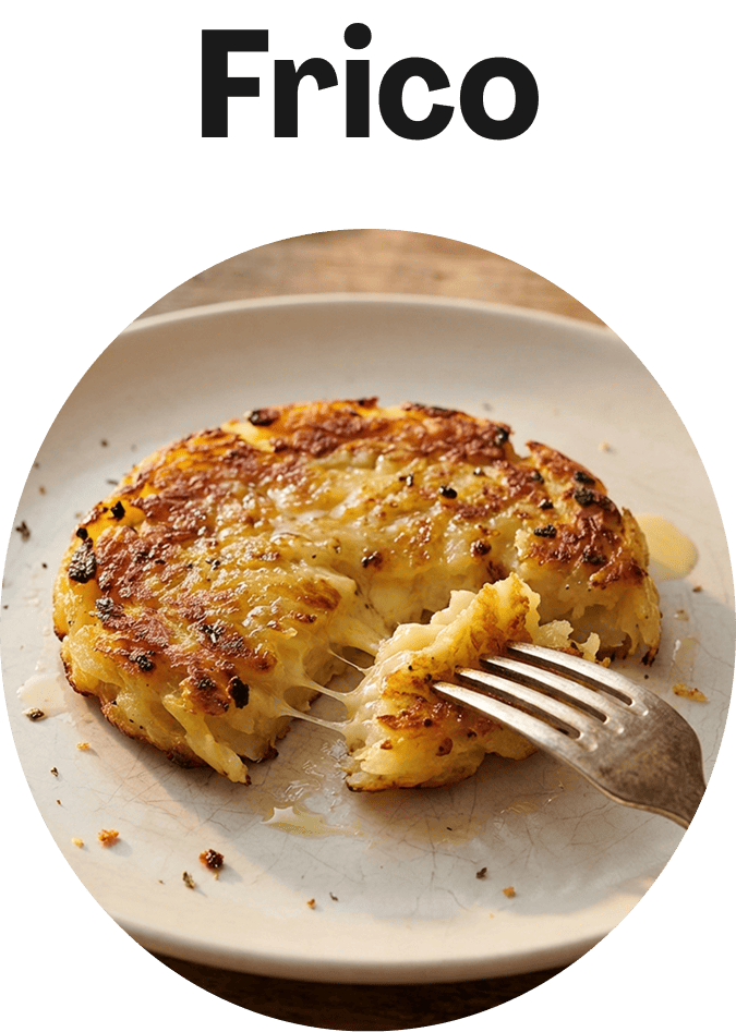 ¿QUÉ ES EL FRICO? Es una receta tradicional de la región de Friuli-Venezia Giulia, al noreste de Italia, que se elabora con solo dos ingredientes: patatas y queso. Sin huevo, ni cebolla.