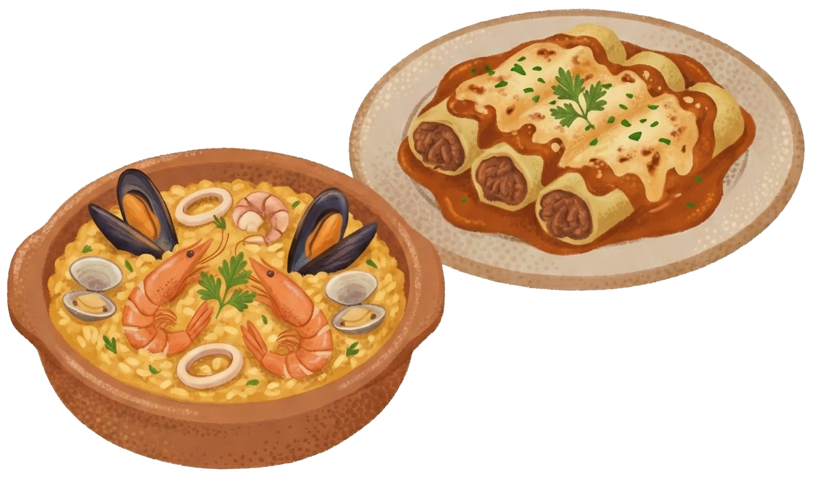 🔸Arroz meloso de marisco 🔸Canelones de carrillera |