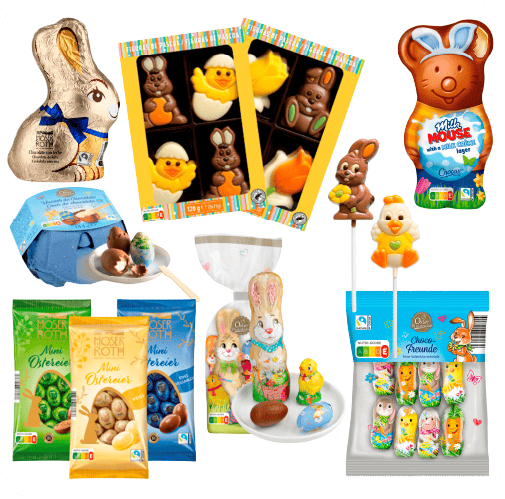 | Llegan a Aldi del 2 al 8 de marzo un surtido de chocolates y dulces para Pascua. Destacan el conejito y los huevos de chocolate o gominolas y piruletas temáticas. |