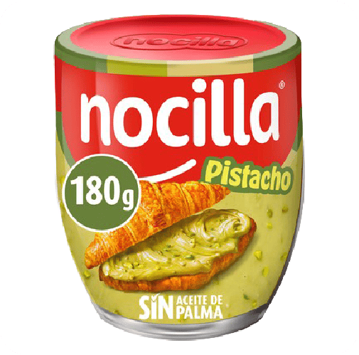| Nueva crema de cacao Nocilla ahora con pistacho y trocitos de pistacho. |