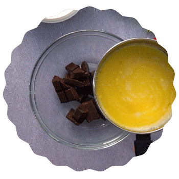 En un bol troceamos chocolate, cuando la nata llegue a ebullición la vertemos sobre el chocolate. |
