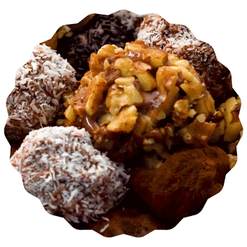 Una vez enfriadas hacemos bolas y las decoramos a nuestro gusto: Fideos de chocolate, frutos secos, cacao en polvo, etc. |
