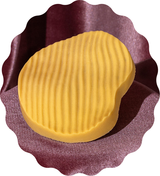 Turrón “Chicken Waffle”: Inspirado en gofres con pollo frito: praliné de gofre caramelizado, caramelo salado, azúcar perlado y… pollo frito.