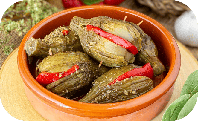 Originarias del corazón de La Mancha, las berenjenas de Almagro no son unas berenjenas cualquiera. Pequeñas, tiernas y con ese sabor avinagrado tan característico, estas joyas gastronómicas son todo un emblema de la provincia de Ciudad Real.